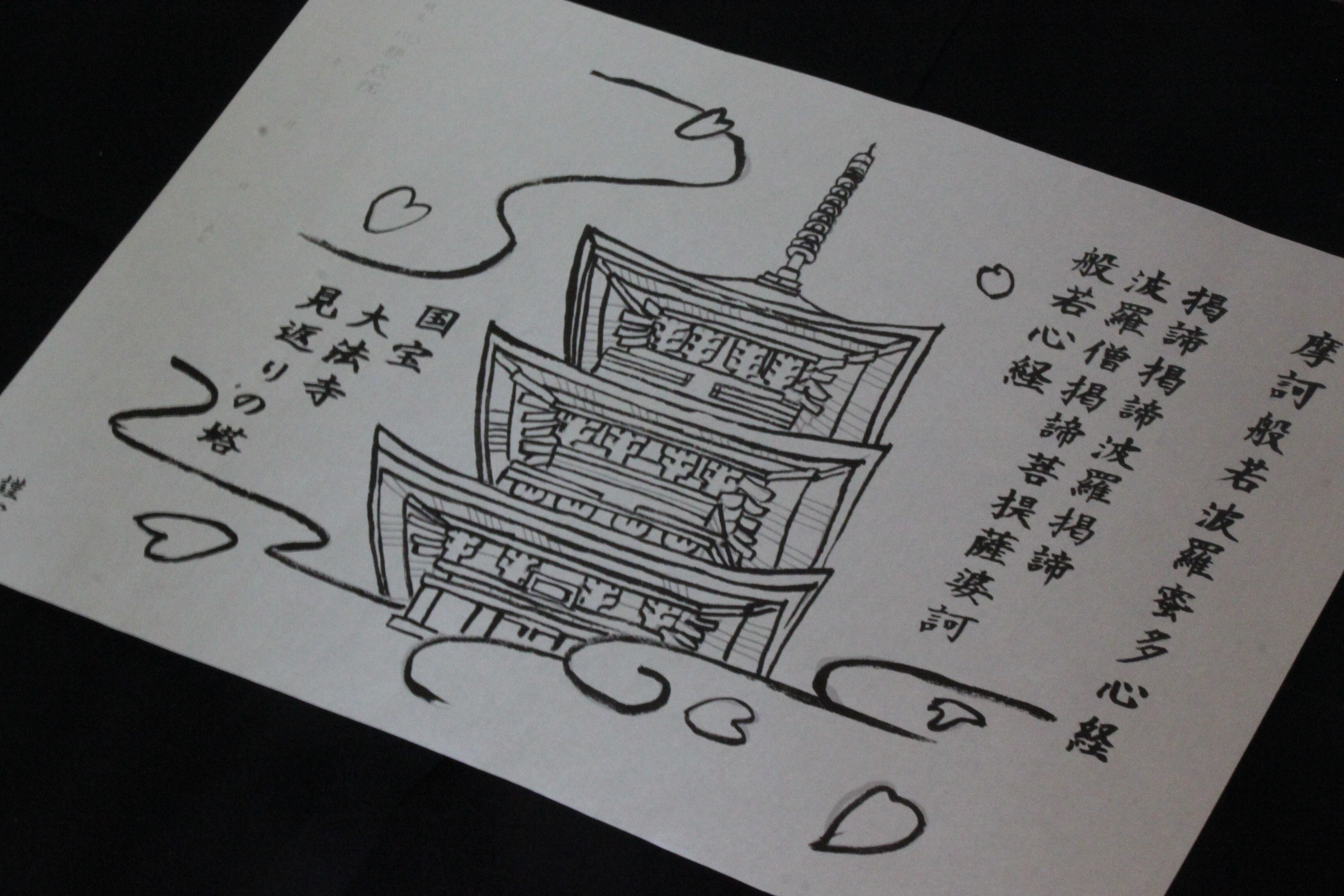 国宝三重塔と般若心経を書く絵写経用紙です。