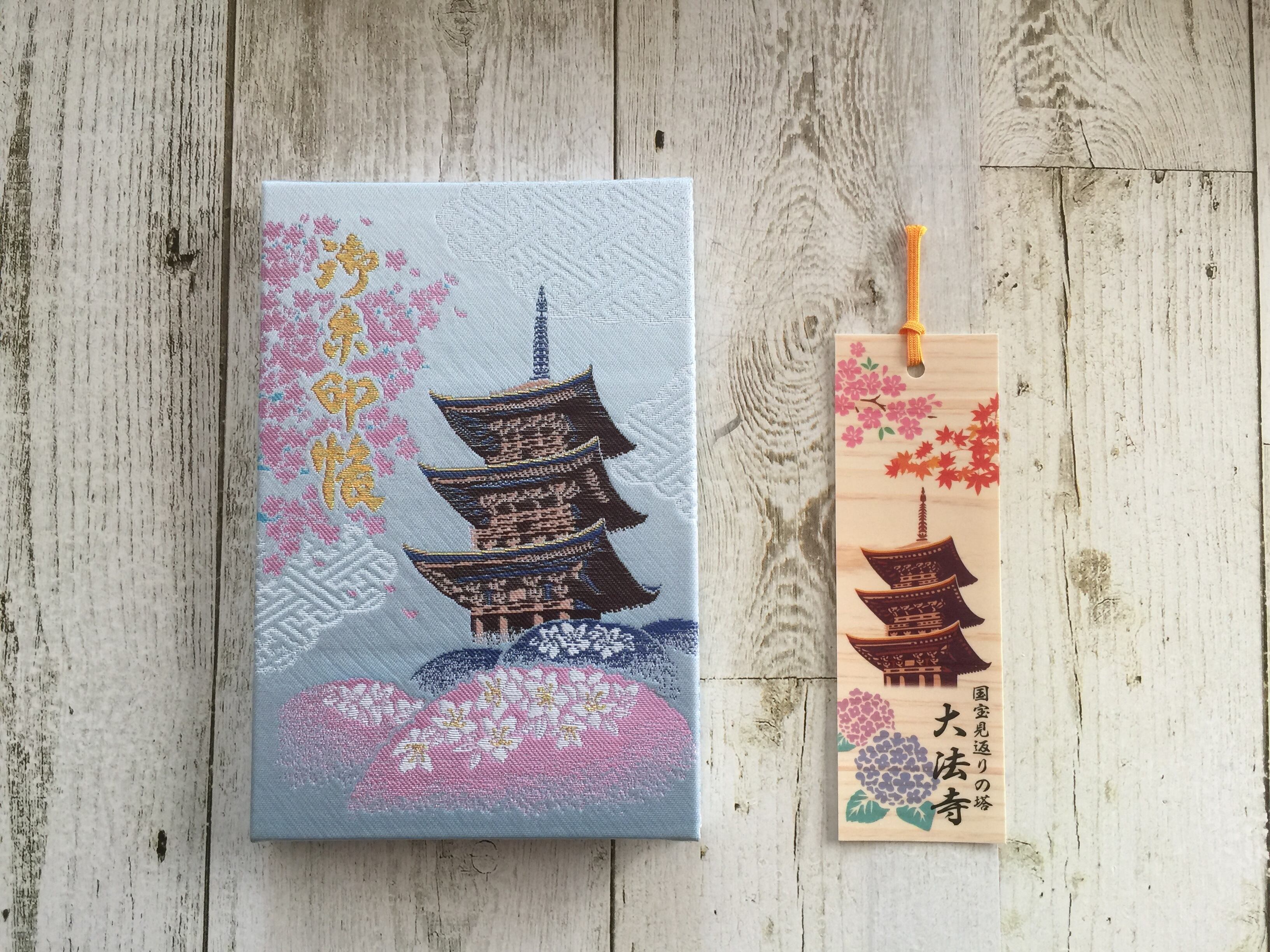 国宝三重塔と境内に咲く花々をデザインした御朱印帳用の「しおり」です。