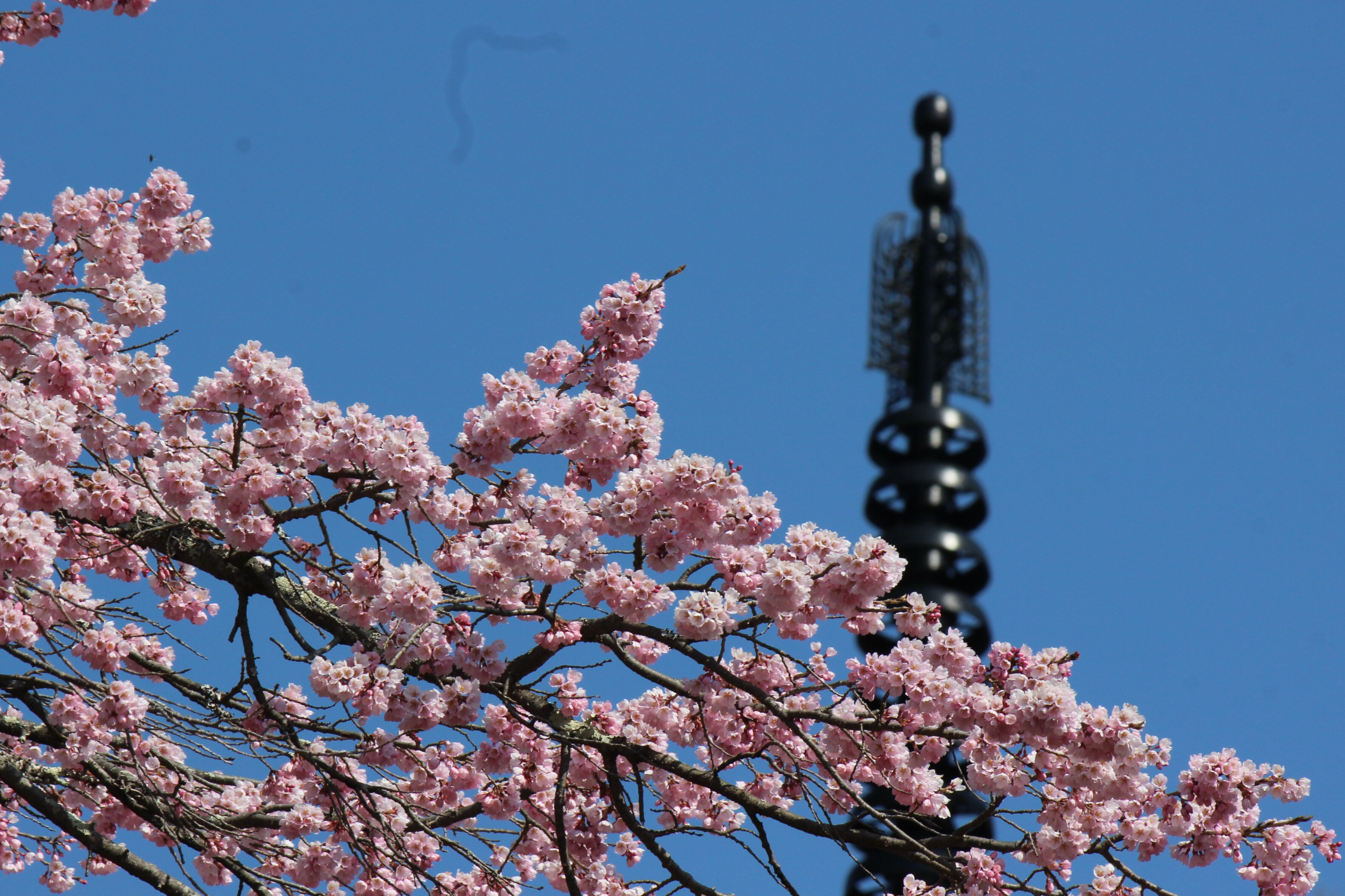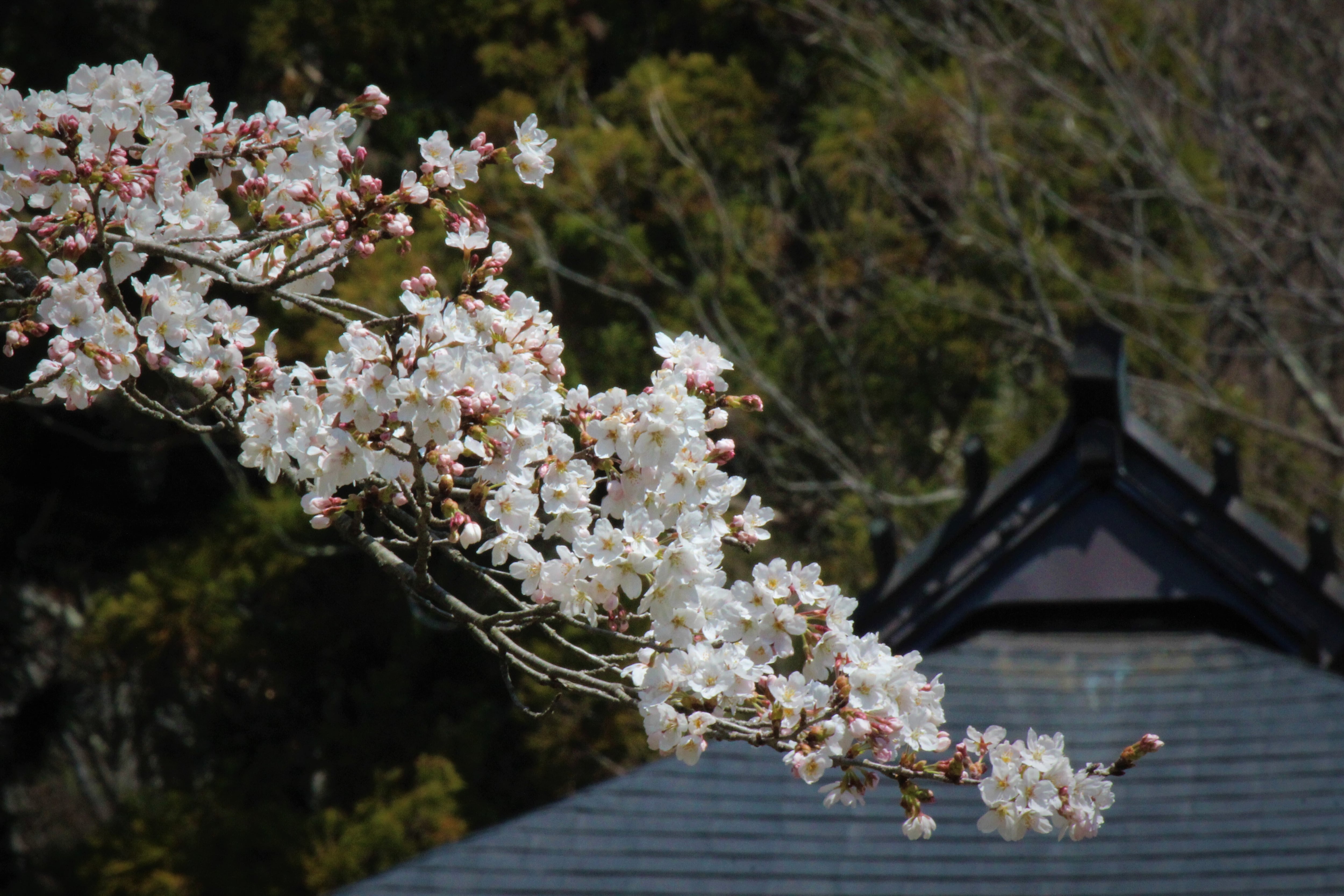 三重塔前のしだれ桜の老木から開花が始まり、境内各地にあるヤマザクラに開花が広まります。大法寺が一年で最も美しい時期となります。